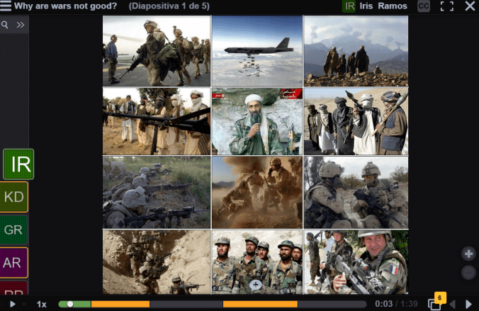 My fourth project consists of the creation of a presentation in which I asked students to participate following the directions I gave them. In this platform, everyone can create, share, and comment on images, Microsoft PowerPoint presentations, videos, audio files, documents, and PDFs, using microphone, webcam, text, phone, and audio-file upload. In my work, I ask them to write a paragraph and record an audio giving their opinions.